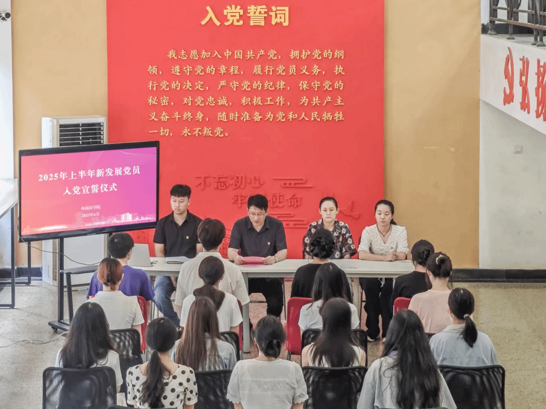 一声誓言,一份承诺,一生坚守。新党员代表翻译学生党支部陈晋在发言中表示,要把入党誓词转化为“三种能力”:在理论学习中提升政治定力,在中外交流中坚定文化自信,在专业实践中建设文化强国。一次课堂讨论中的真理捍卫,一次社会实践中的民生调研,一次国际交流中的立场坚守,都是对党员身份的生动诠释。