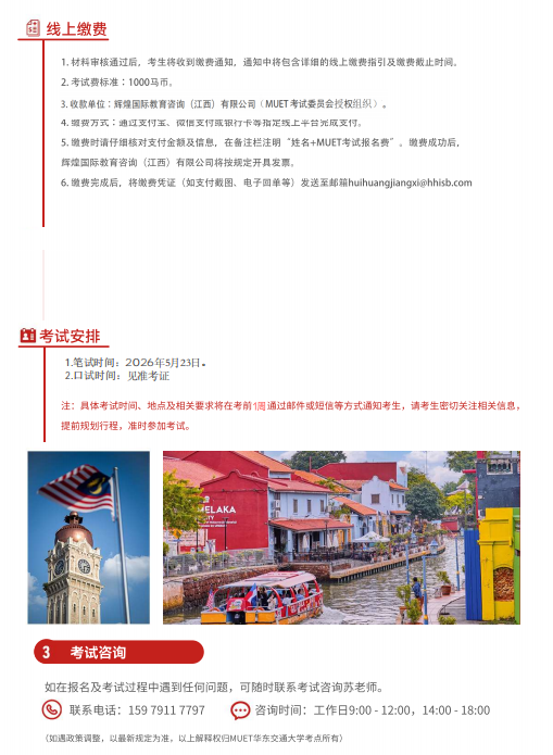 澳门六合彩资料库 MUET考点即将在2026年5月23日举行笔试,报名截止日期2026年5月10日,详情如下: