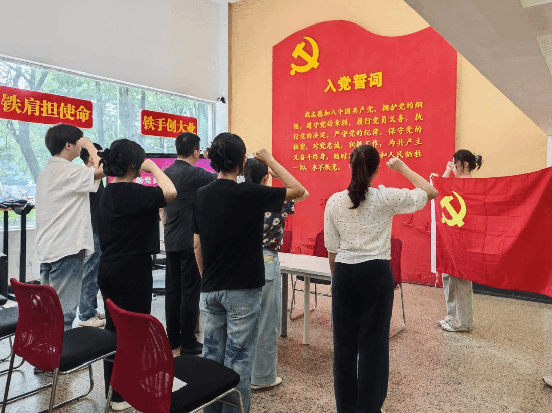 一声誓言,一份承诺,一生坚守。新党员代表翻译学生党支部陈晋在发言中表示,要把入党誓词转化为“三种能力”:在理论学习中提升政治定力,在中外交流中坚定文化自信,在专业实践中建设文化强国。一次课堂讨论中的真理捍卫,一次社会实践中的民生调研,一次国际交流中的立场坚守,都是对党员身份的生动诠释。