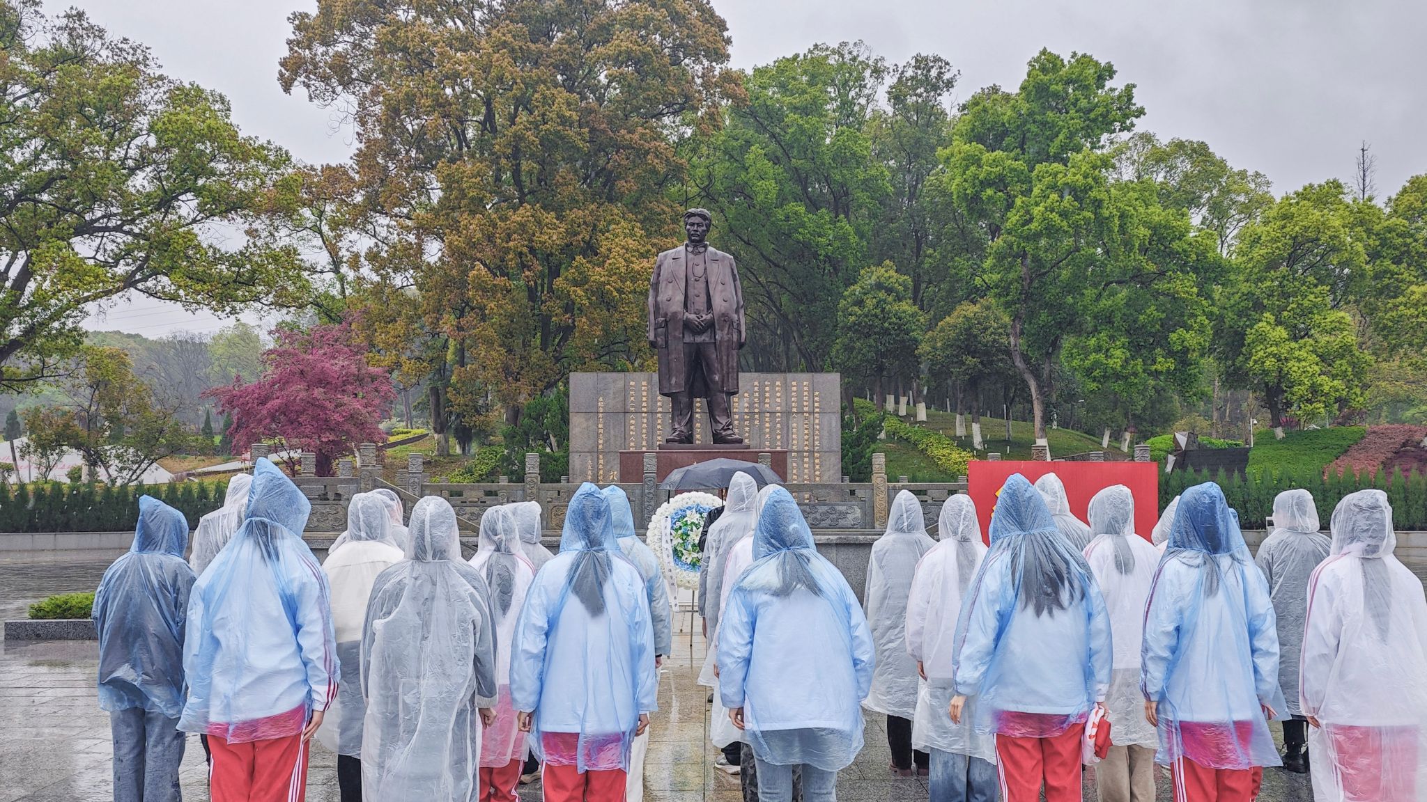 组织师生党员、入党积极分子赴方志敏烈士纪念园开展清明祭扫活动。活动现场,师生们肃穆而立,怀着无比崇敬的心情,向方志敏烈士敬献花圈,默哀鞠躬。