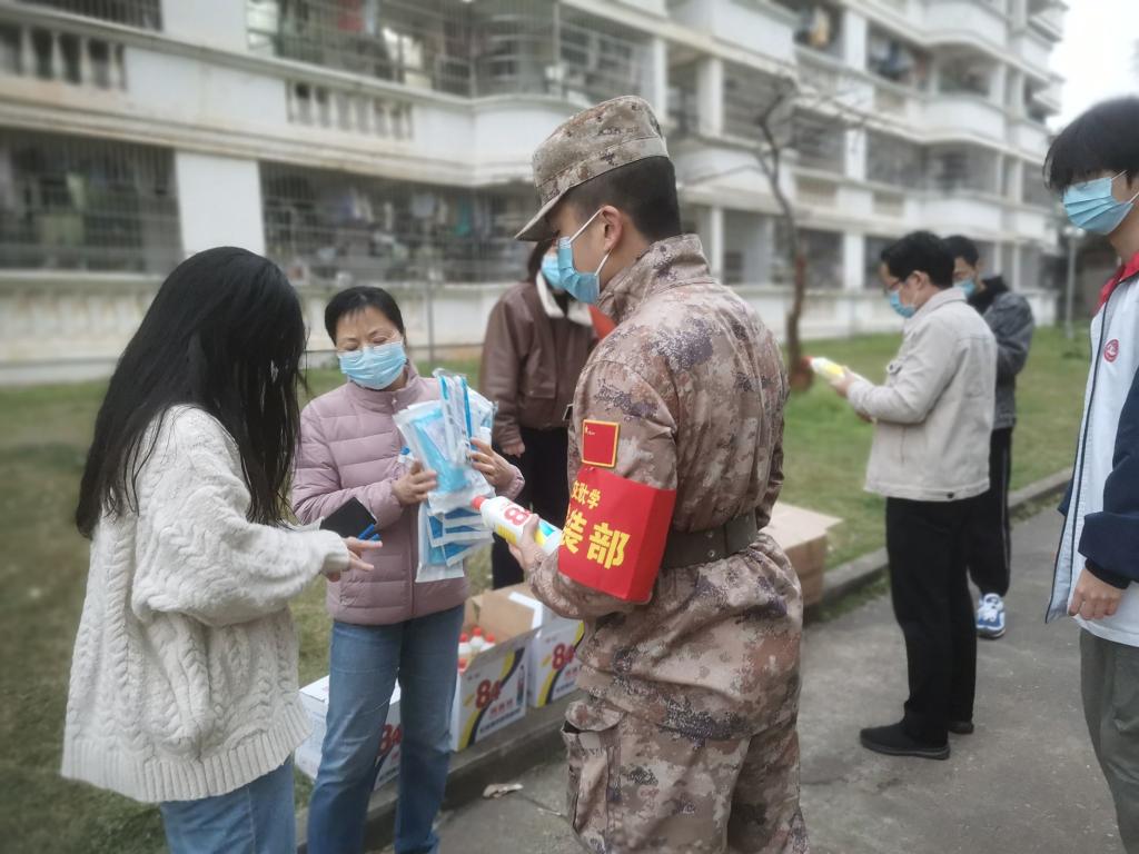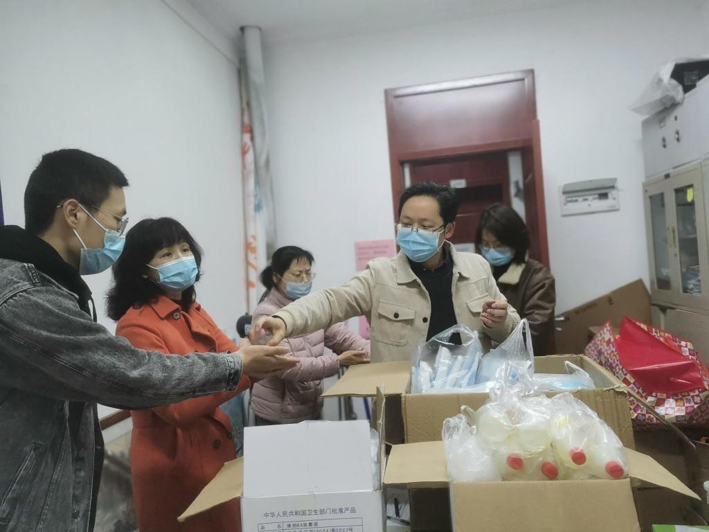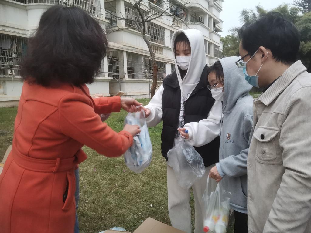 和院行政的委托,率领在校教师党员谭涛、刘春莲、龚沁怡和学生党员谢潇等争当“火车头”做表率,一同深入学生宿舍发放防疫物资。他们将防疫物资仔细清点、消毒,第一时间送到了学生宿舍楼下。每一位老师和志愿者也将自身认真仔细消毒,以此减少病毒传播风险,保障每一位同学的绝对安全。