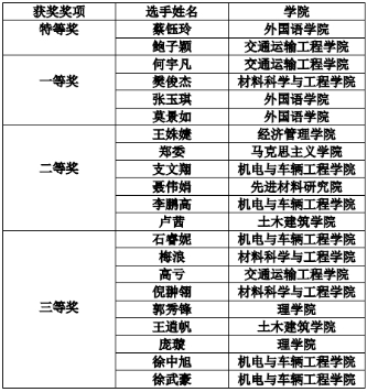 此次大赛共设特等奖两名、一等奖四名、二等奖六名、三等奖九名。比赛总获奖名单如下: